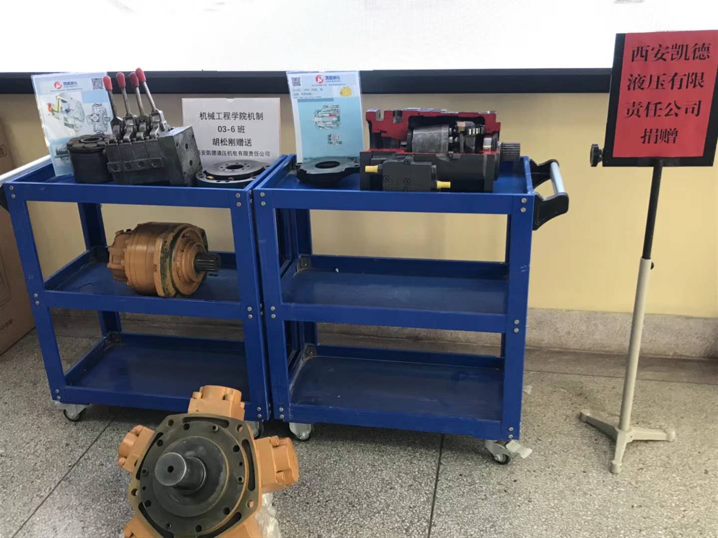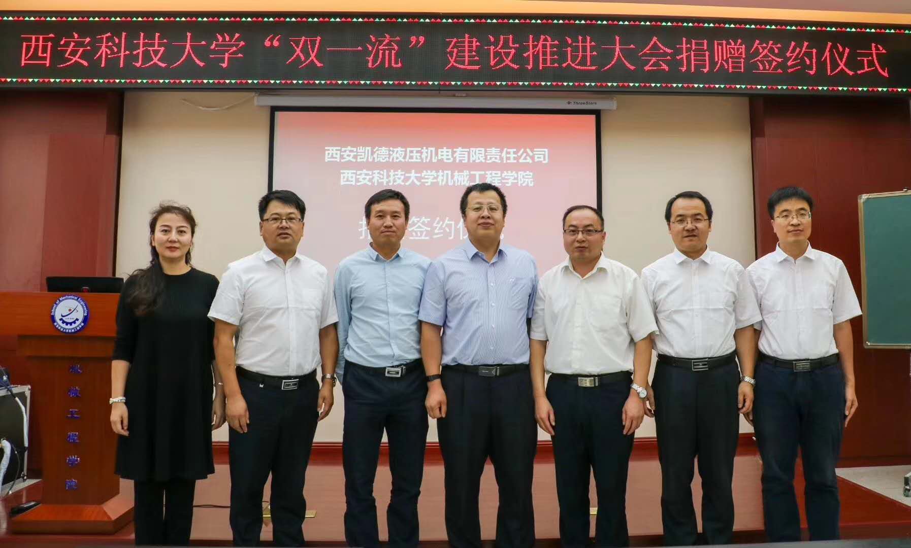 9月14日上午,為慶賀西安科技大學(xué)六十周年校慶,我公司總經(jīng)理高彥軍、技術(shù)總監(jiān)胡松剛一行代表西安凱德液壓來(lái)到西安科技大學(xué)臨潼校區(qū)驪山校園,向機(jī)械工程學(xué)院捐贈(zèng)了液壓馬達(dá)、液壓泵等液壓元件解剖件。機(jī)械工程學(xué)院黨委書(shū)記汪衛(wèi)兵,院長(zhǎng)張旭輝,黨委副書(shū)記李婉麗,副院長(zhǎng)趙栓峰,副院長(zhǎng)寇發(fā)榮等相關(guān)負(fù)責(zé)人及部分學(xué)生參加了簽約儀式。
